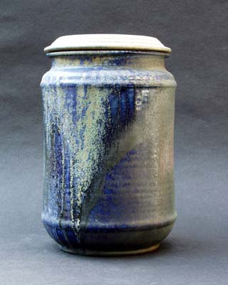 Deckelgefäß, Kobalt-Spatglasur mit Salz- und Ascheanflug